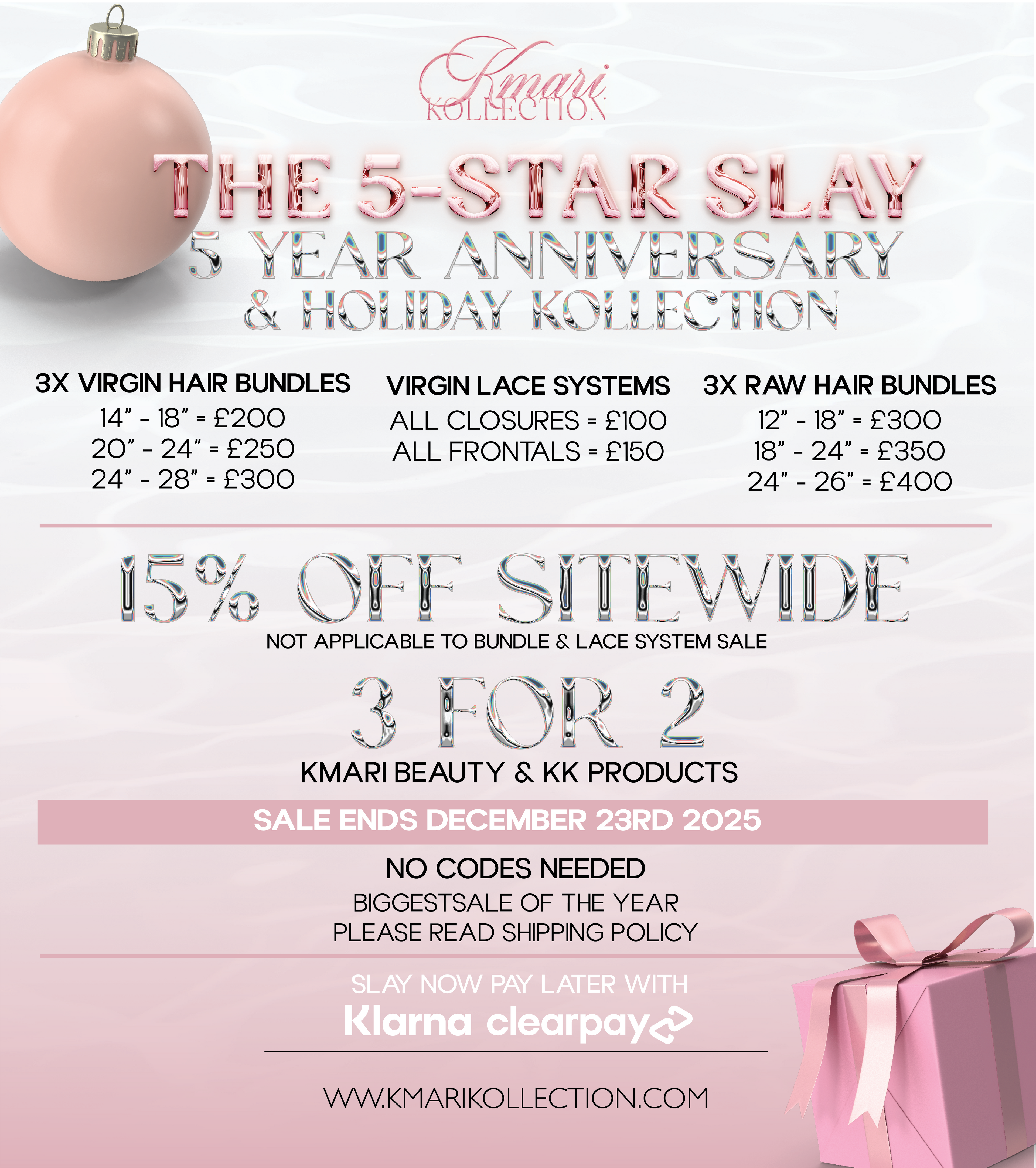 Celebrate with us! The 5-STAR SLAY: YEAR ANNIVERSARY & HOLIDAY KOLLECTION SALE is here, offering the best deals of the season for your ultimate holiday and New Year slay. Whether you're looking for our top Bundle Deals or discounts on individual products, we've got you covered. Shop easily with no codes and zero hassle!